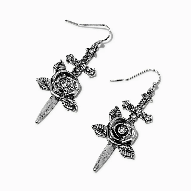 Silver Plated Oval Horizontal Baguette Hoop Earrings