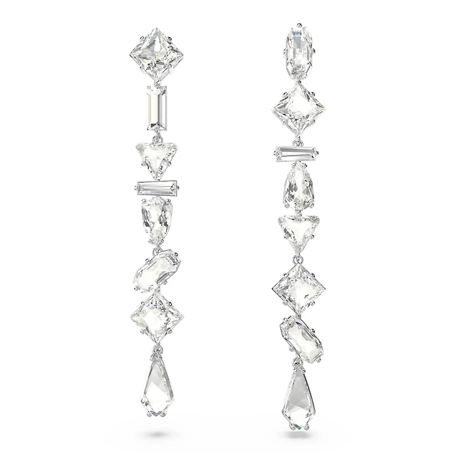 Silver Cubic Zirconia Skinny Layered Drop Earrings