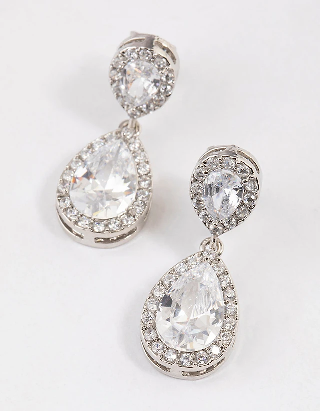 Encircled Mini Diamond Simulant Pear Drop Earrings