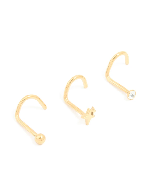 Surgical Steel Butterfly & Diamante Nose Studs 3-Pack