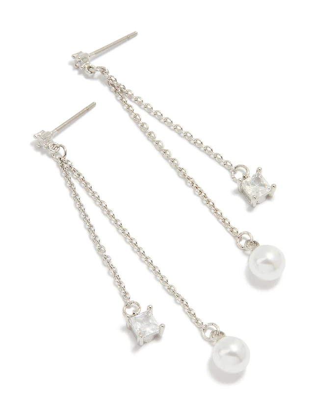 Silver Plated Cubic Zirconia & Freshwater Pearl Hook Drop Earrings