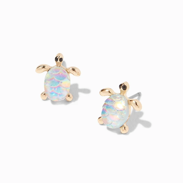 Gold-tone Turtle Iridescent Shell Stud Earrings