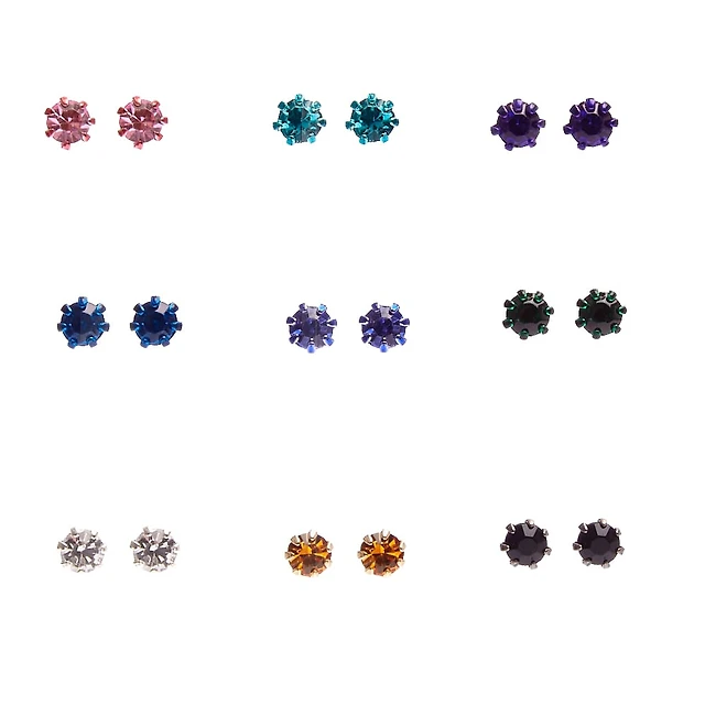 Mixed Metal Crystal Earrings Set - 9 Pack