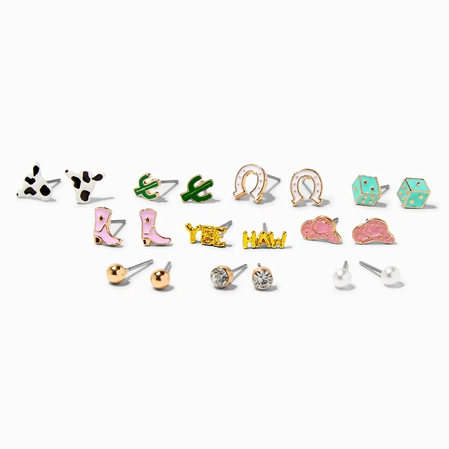 Yee Haw Cowpoke Stud Earrings - 10 Pack