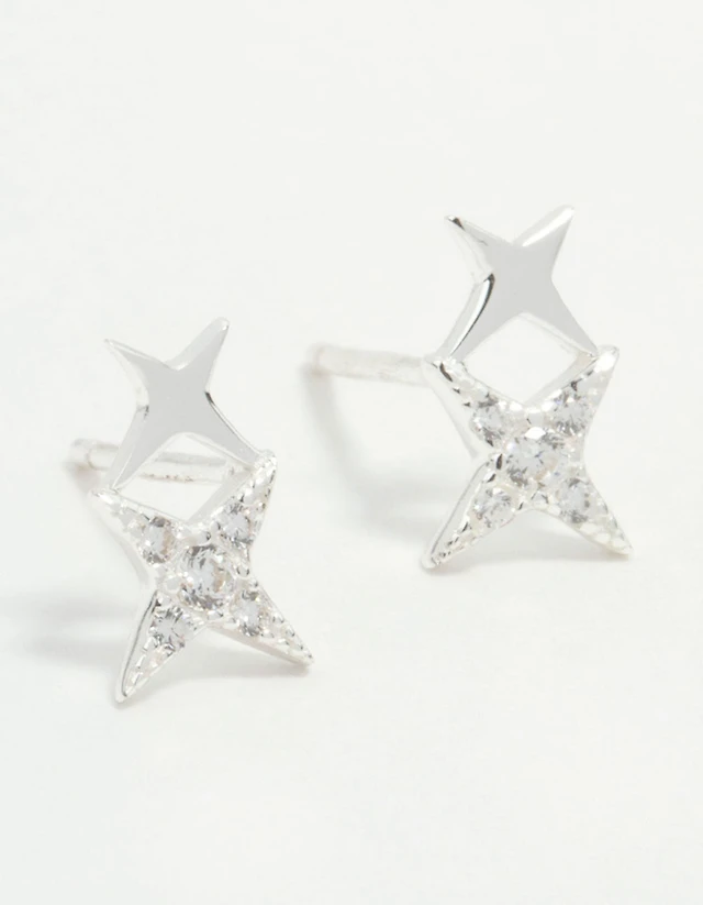 Sterling Silver Cubic Zirconia Mini Star Stud Earrings