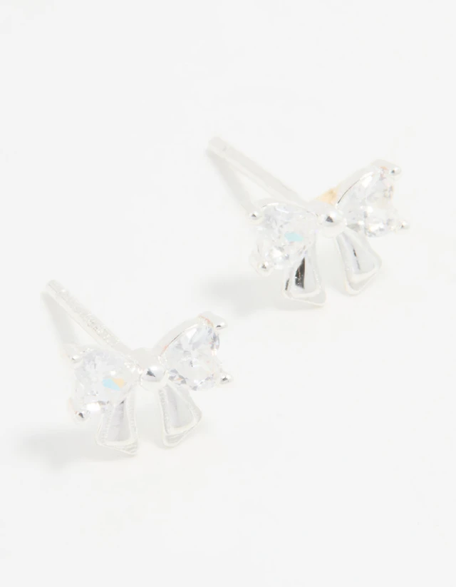 Silver Cubic Zirconia Dainty Ribbon Stud Earrings