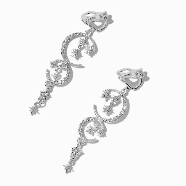 Silver-tone Celestial Sparkle Clip-On Drop Earrings