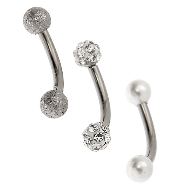 16G Silver-tone Titanium Bar Fireball Pearl Rook Earrings - 3 Pack