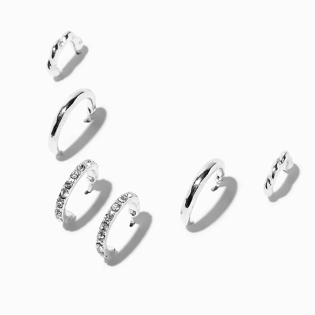 Silver-tone Graduated Embellished Huggie Hoop Earring Stackables Set - 3 Pack