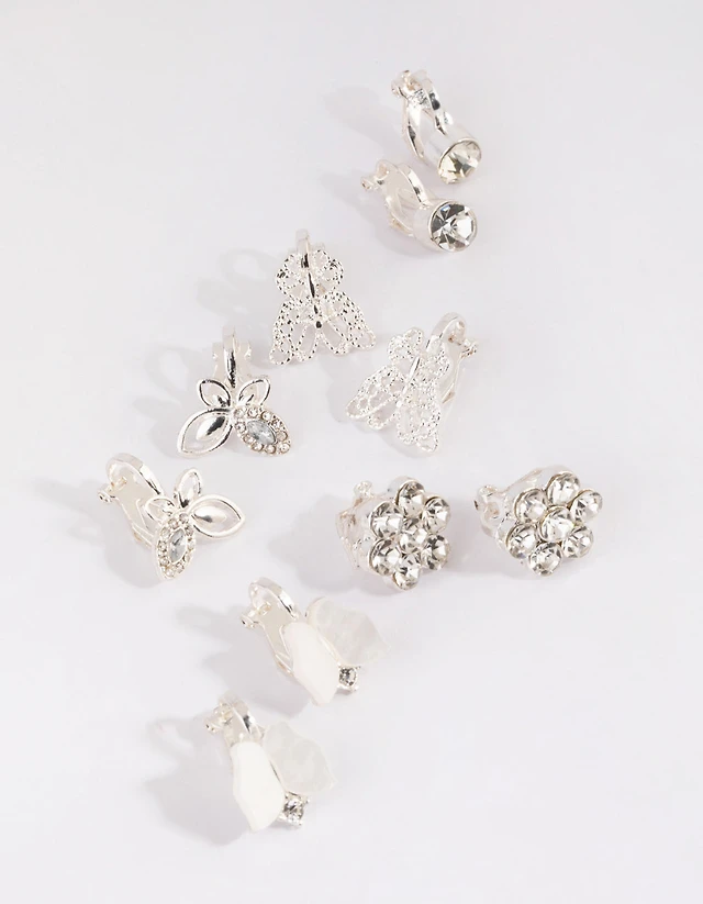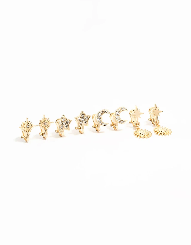 Rose Gold-tone Embellished Rainbow Clip-On Earrings - 6 Pack