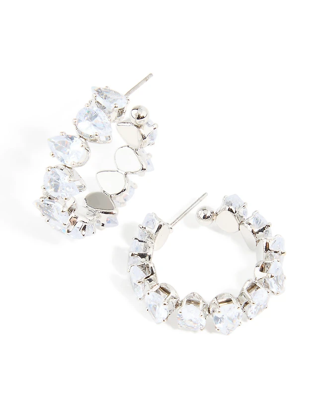 Silver Cubic Zirconia Cluster Hoop Earrings