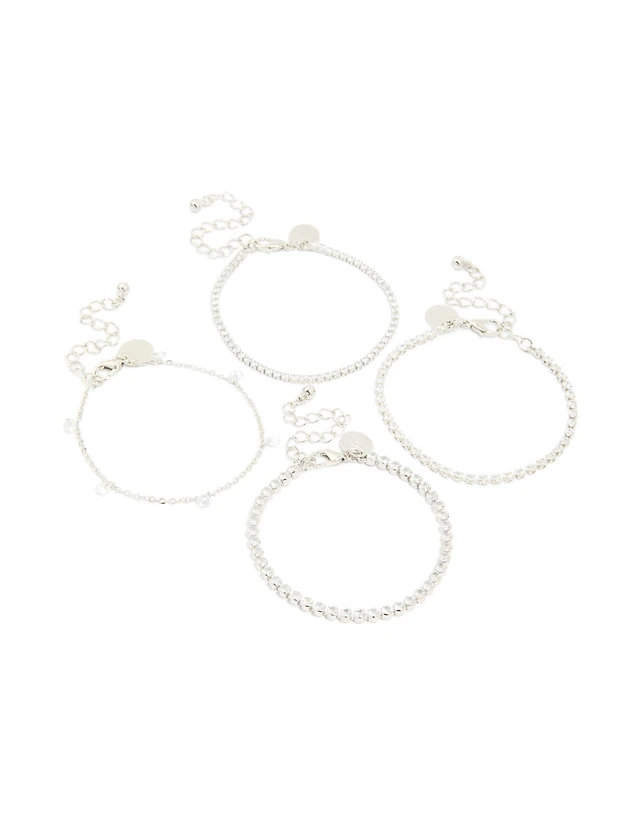 Silver Plated Cubic Zirconia & Pearl Earrings 4-Pack