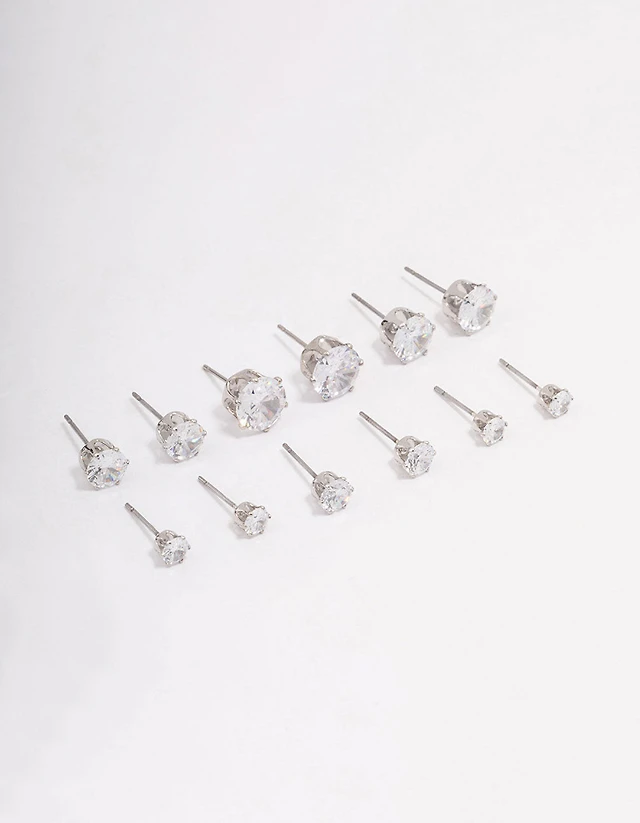 Silver Classic Round Cubic Zirconia Earring 6-Pack