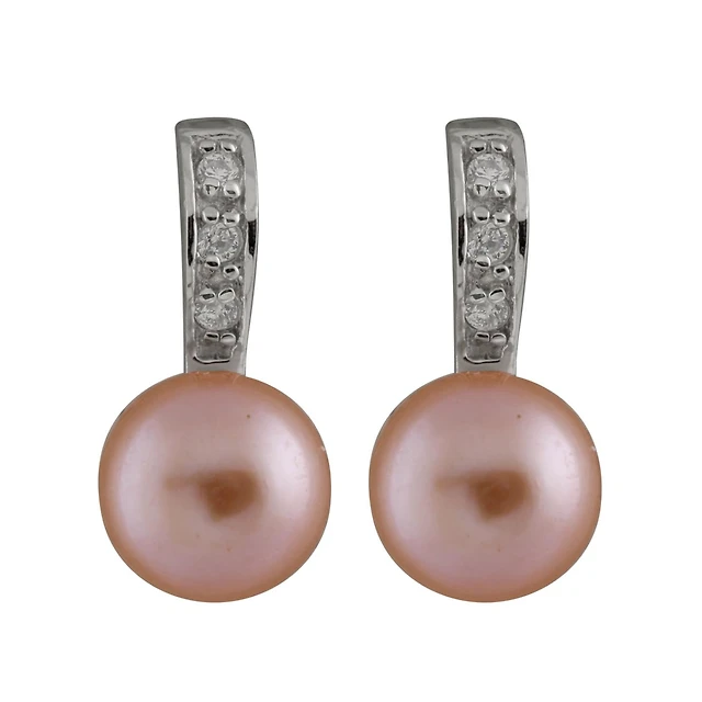 Sterling Silver 8.5-9mm Freshwater Pearls and Cubic Zirconia Earrings