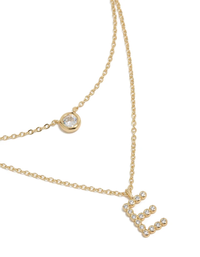 Gold Plated Cubic Zirconia Bezel Letter C Layered Necklace