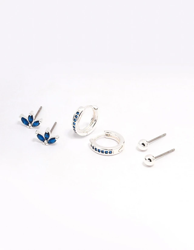Silver Plated Cubic Zirconia Sapphire Huggie Earrings 6-Pack