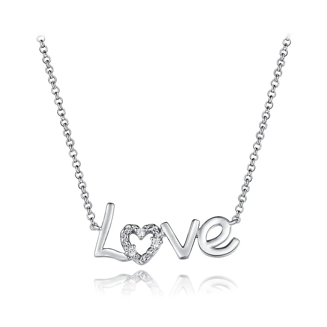 Sterling Silver Cubic Zirconia Heart Tag 19" Pendant