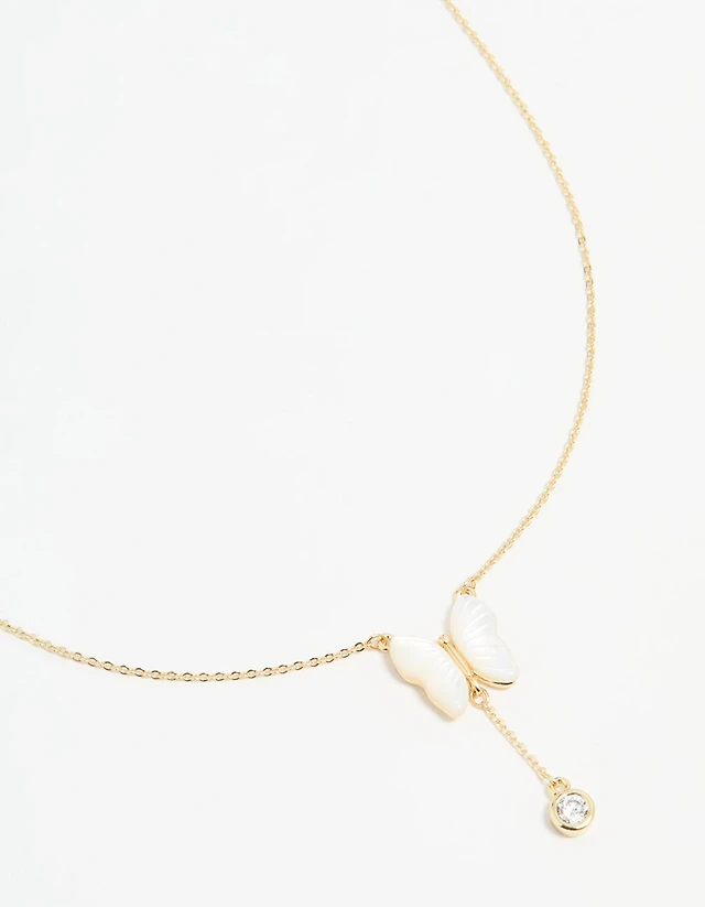 Sterling Silver Cubic Zirconia 19" Butterfly Necklace