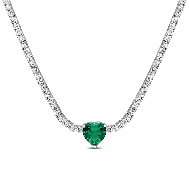 Julianna B Sterling Silver Green Cubic Zirconia Created White Sapphire Necklace