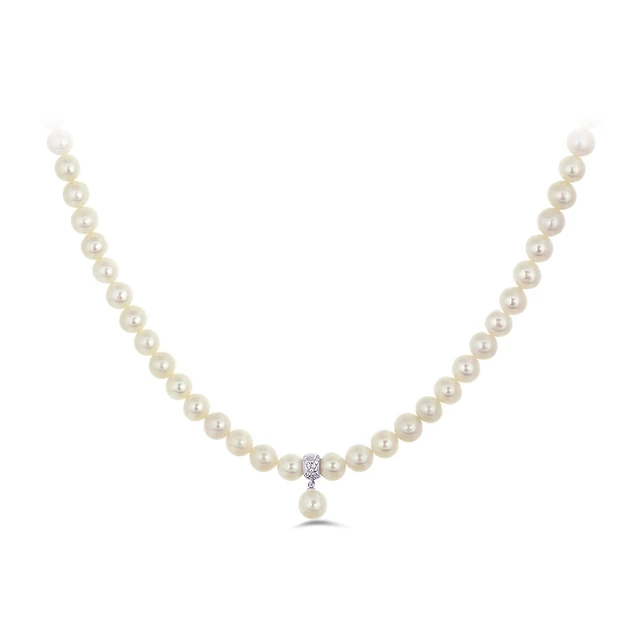 Sterling Silver 8-8.5mm White Pearl Cubic Zirconia Choker with Extender