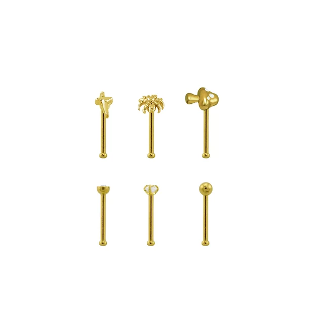 Gold Plated Surgical Steel Micro Heart Nose Piercing 6-Pack