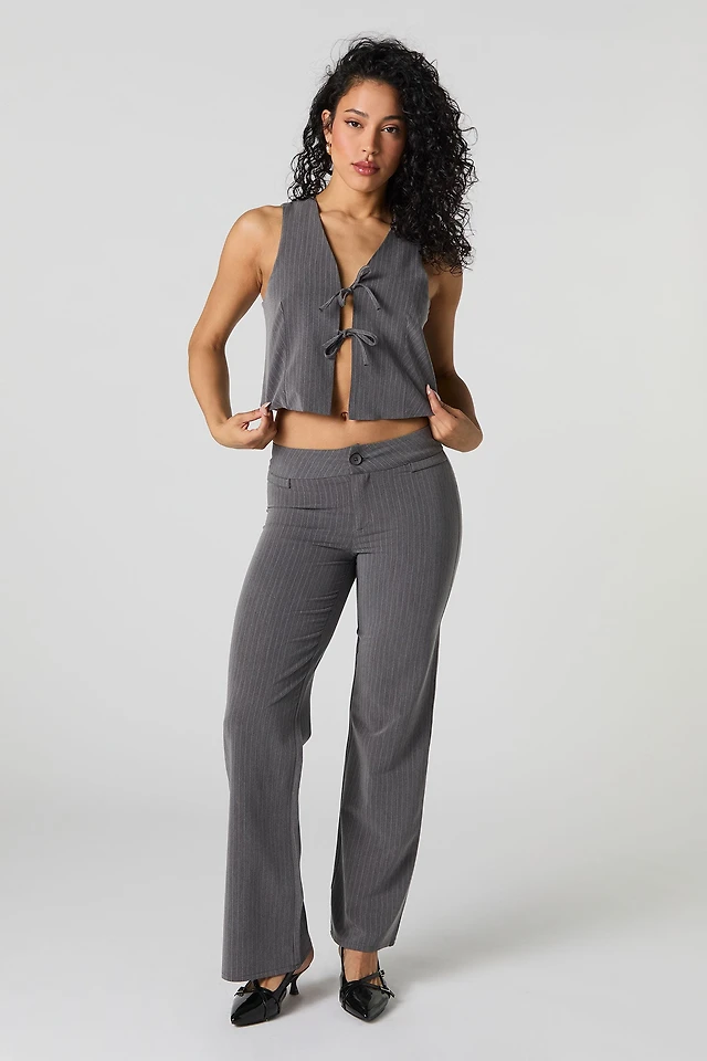 Pantalon à jambe large et rayures fines avec taille coulissante