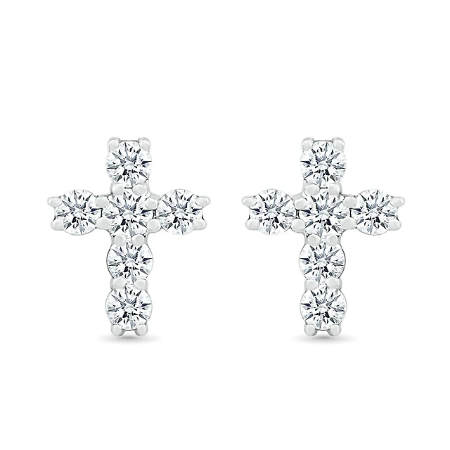0.05 CT. T.W. Diamond Miracle Cross Stud Earrings in Sterling Silver