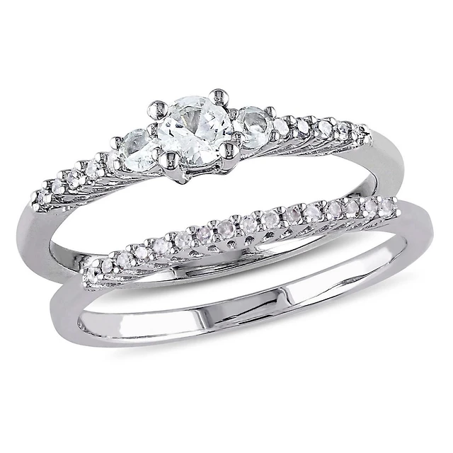 Miabella 1/3 Carat T.G.W. Created White Sapphire and 1/10 Carat T.W. Diamond Sterling Silver Three-Stone Bridal Ring Set