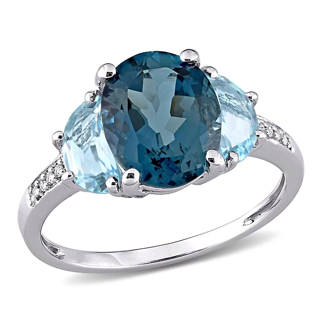 Julianna B Sterling Silver London and Sky Blue Topaz Diamond Three-Stone Ring