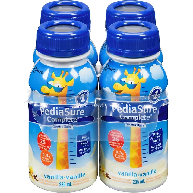 PediaSure Complete®, Nutritional Supplement, 4 x 235 mL, Vanilla – Kids nutritional shake containing DHA and vitamins, helps promote weight gains when taken twice a day