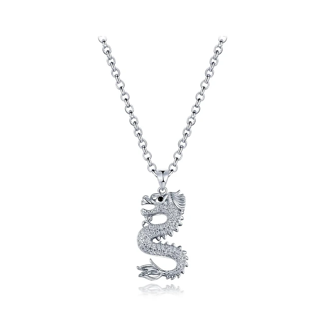 Sterling Silver Cubic Zirconia Dragon Pendant with 24" Rolo Chain