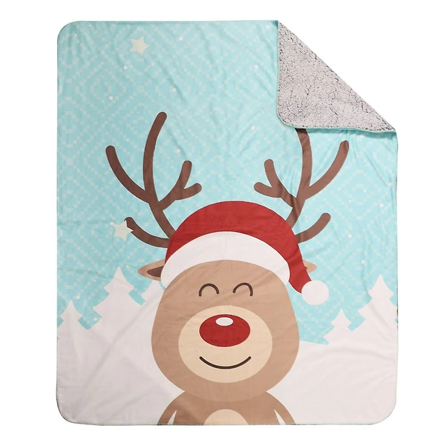Holiday Sherpa Throw, Reindeer 50" x 60"