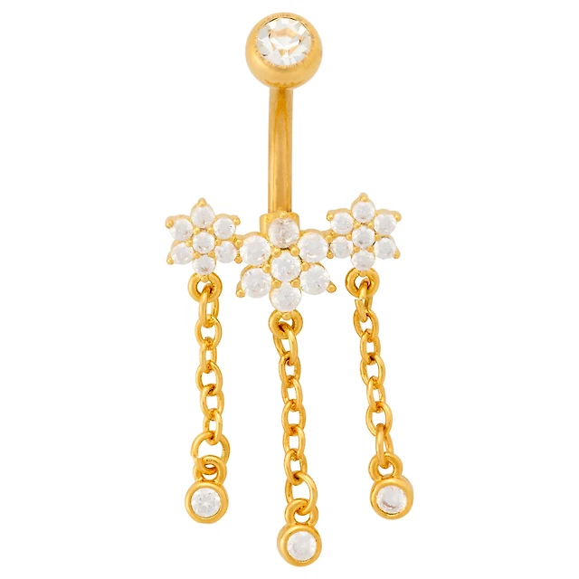 Goldtone CZ Flower Dangle Belly Ring - 14 Gauge