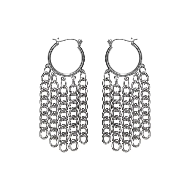 Flame Silver-Tone Dangle Huggie Hoop Earrings - 18 Gauge