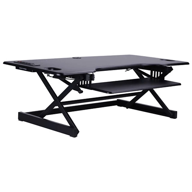 Rocelco 37.4"W Ergonomic Adjustable Electric Desk Riser with Keyboard Tray - Black
