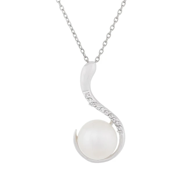 Sterling Silver 10-11mm Pearl & Cubic Zirconia Pendant