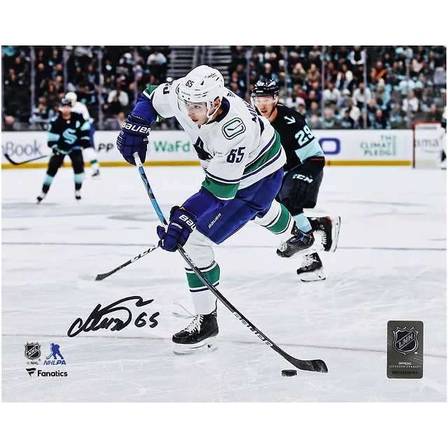 Elias Pettersson Vancouver Canucks Autographed 8" x 10" Blue Jersey Shooting Photograph