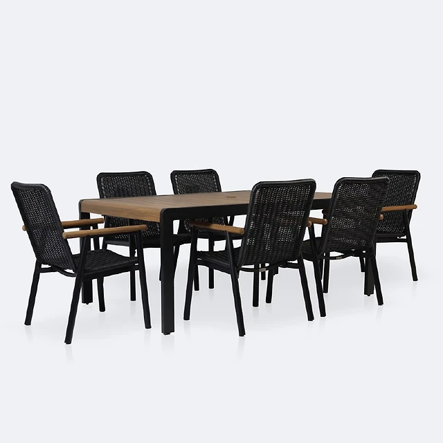 Napa Dining Set- Black Frame - Wood-look Slat Table Top - Seats 6