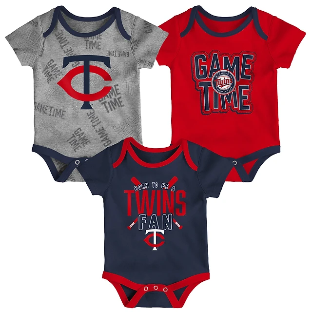 Newborn & Infant Minnesota Twins Navy/Red/Heathered Gray Game Time Three-Piece Bodysuit Set