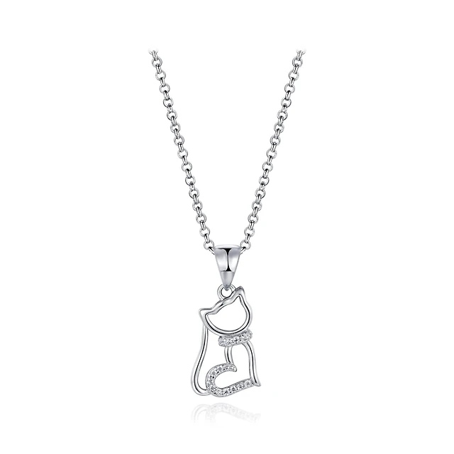 Sterling Silver Cubic Zirconia Heart Tag 19" Pendant