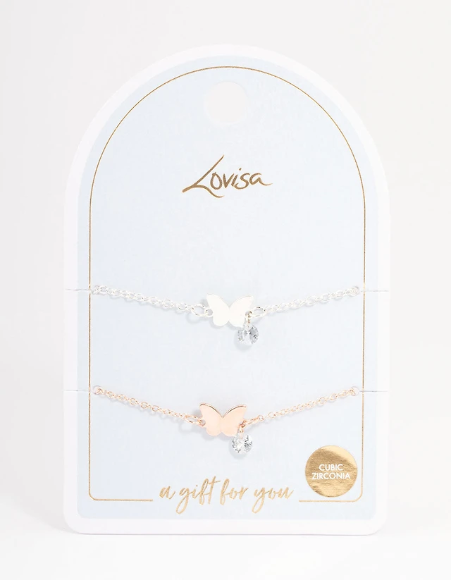 Rose Gold Best Friend Butterfly Necklace Pack