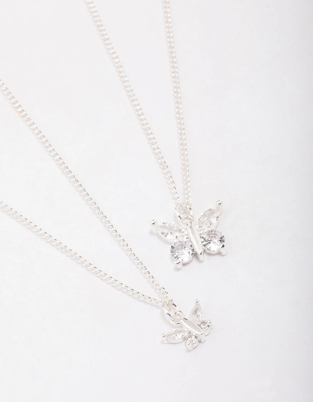 Silver Diamante Butterfly Necklace & Stud Earring Set