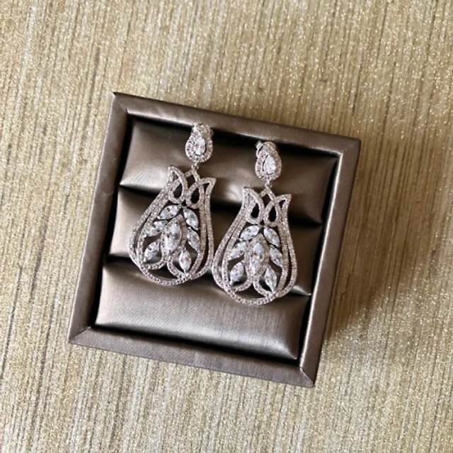 Gold Plated Cubic Zirconia Small Tennis Bracelet & Earrings Set