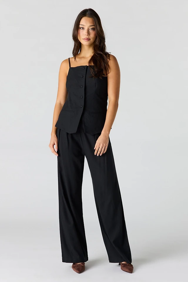 High-Waisted Wide-Leg Pleated Pant