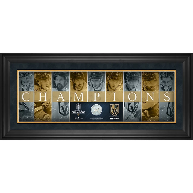 Vegas Golden Knights 2023 Stanley Cup Champions Framed 10" x 30" Champions Panoramic with a Piece of Game-Used Net from the 2023 Stanley Cup Final - Limited Edition of 500