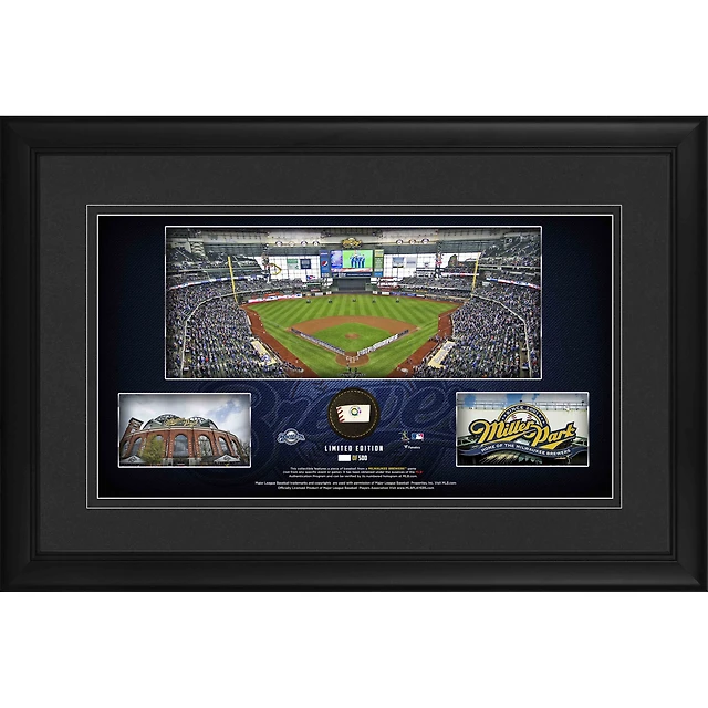 Milwaukee Brewers Framed 10" x 18" Stadium Panoramic Collage with a Piece of Game-Used Baseball - Limited Edition of 500