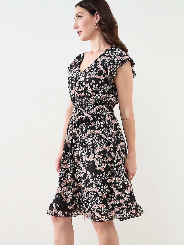 Ruffle Shoulder Fit and Flare Dress