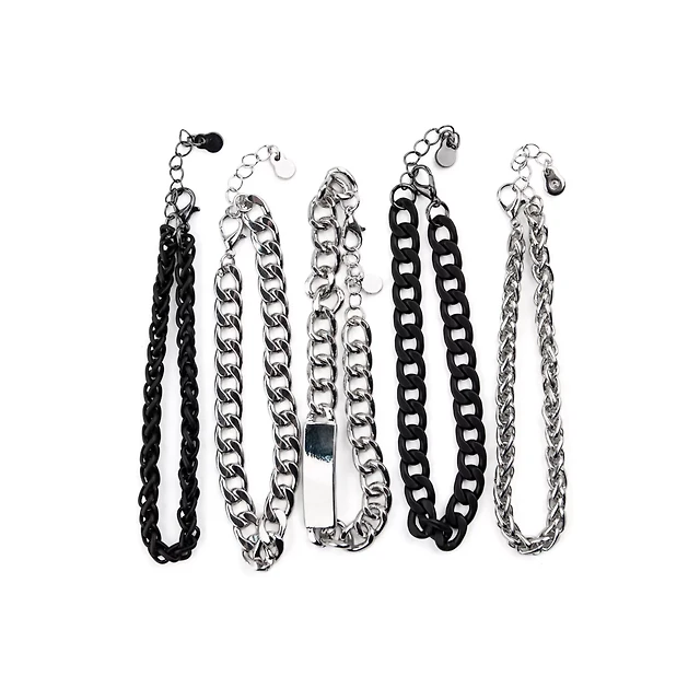 Multi-Pack Black Skull Silver-Tone Chain Bracelets - 2 Pack