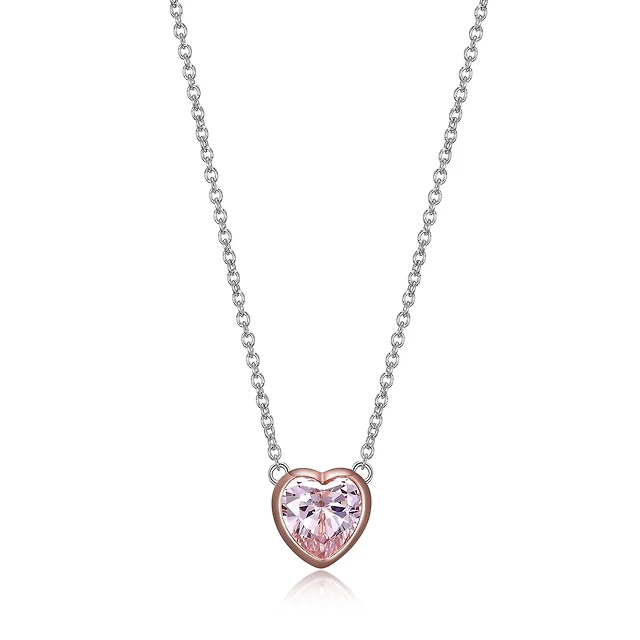 Sterling Silver Created Pink Sapphire Heart Necklace