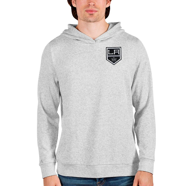 Women's Antigua Heather Navy LA Galaxy Full Front Action Pullover Hoodie
